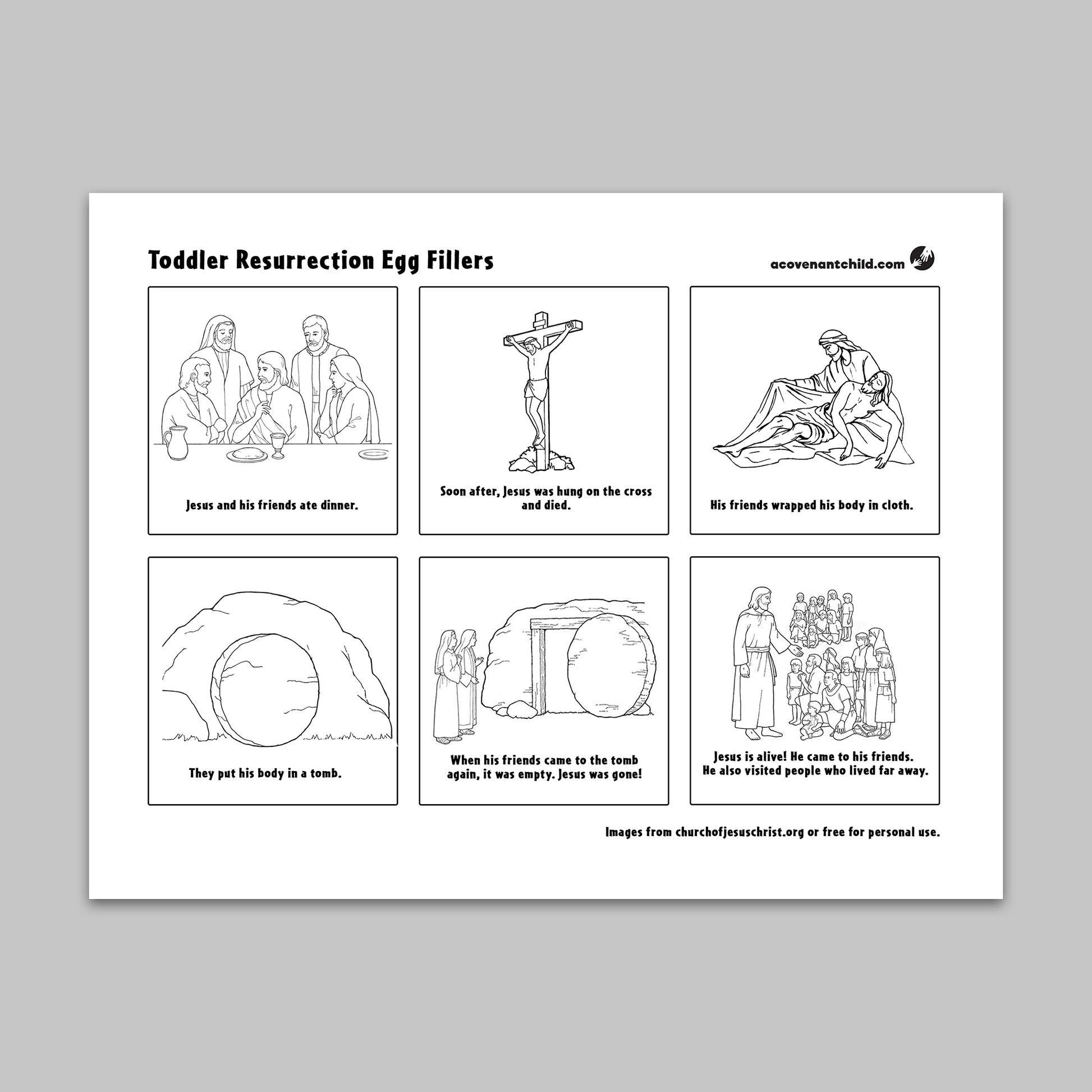 This download gives multiple options for toddler fun and refers to 3 Nephi 11. The Easter story is told in a very simple way for young and older toddlers. It's based on preschool resurrection eggs, but we used images so the younger toddlers could understand the story better.